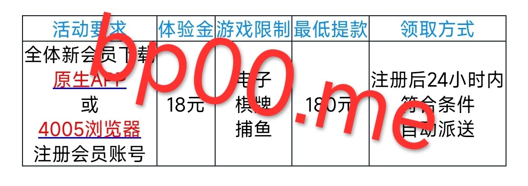 新用户注册绑卡 一小时内自动赠送18元彩金 限制游玩电子捕鱼棋牌 最低提款180元