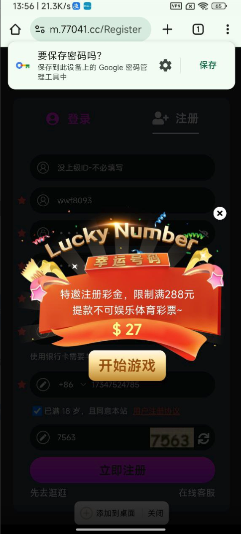 特邀注册跳弹窗,目前再送。平台还有特殊活动打码满7.7第二天自动弹17彩金!
