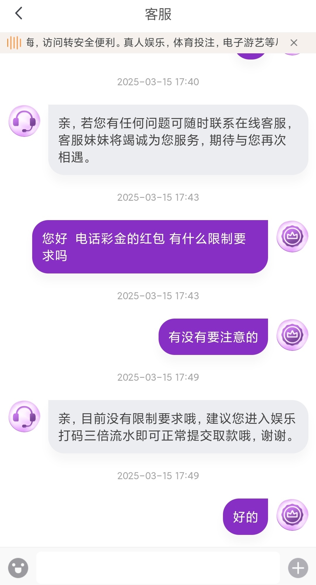 电话回访,找客服。说领取电话红包。查手机号,脸皮厚的不要脸的去碰,388 3倍流水