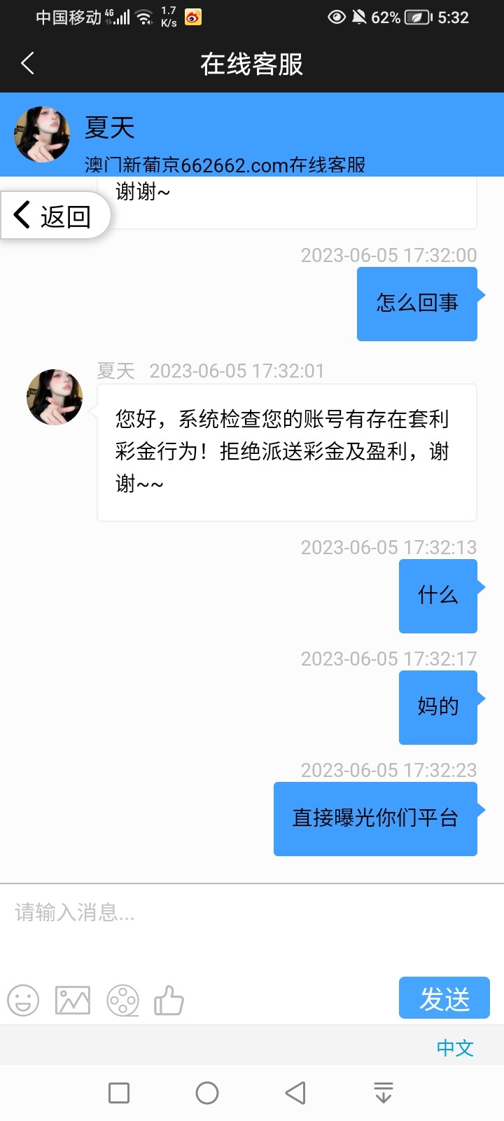662短信特邀送66打了675提现直接被黑了