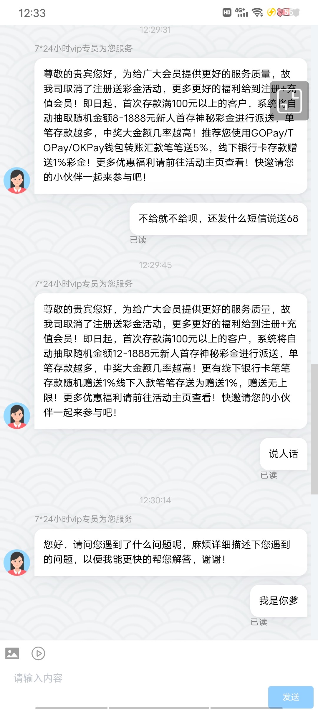 发短信说送68,一去就说已经没有这个活动了