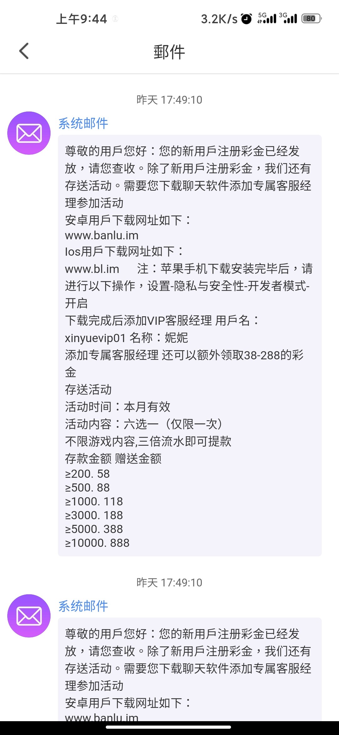 你好帅哥,你不在我私特邀专员名单内,请你首充试试哟,你个二逼