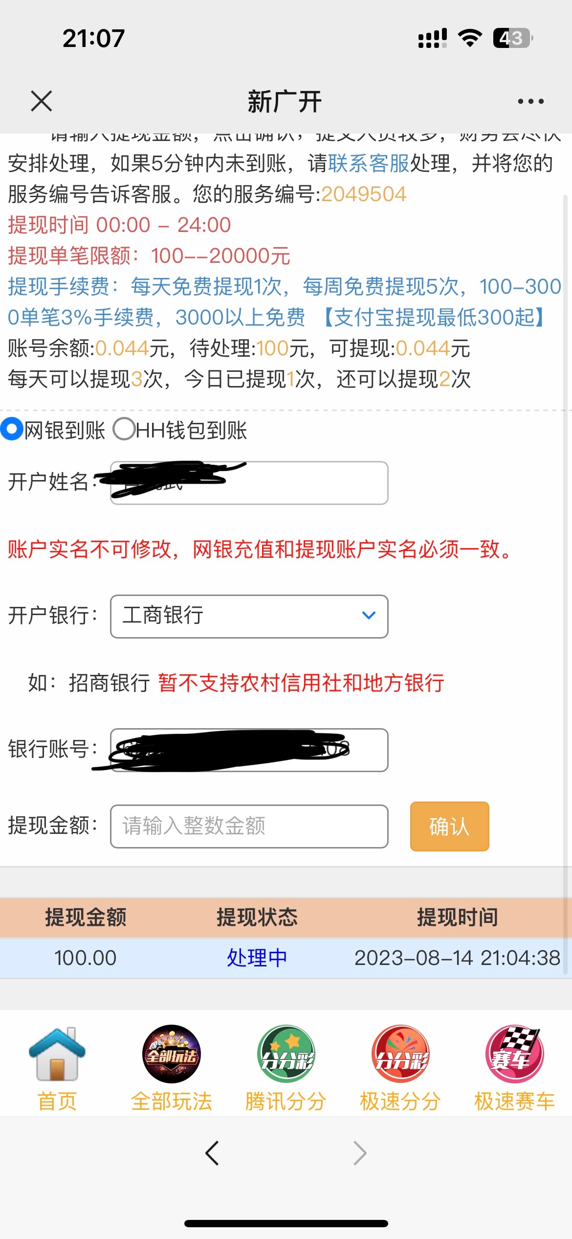 刚玩了,变成1000提现,提不出来,100才可以提