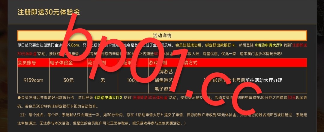 新用户注册绑卡去申请页面自助申请30元彩金限制游玩电子捕鱼棋牌最低提款100元