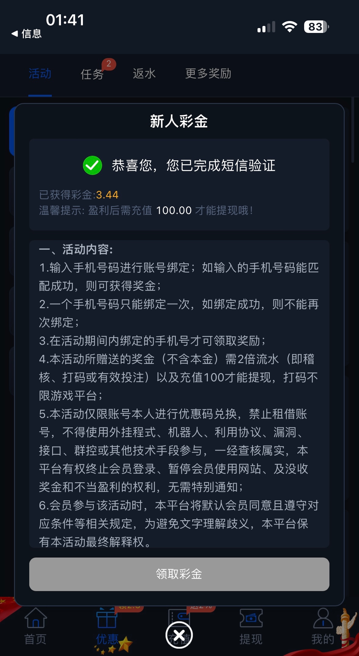 输入手机号验证自动领取3-88