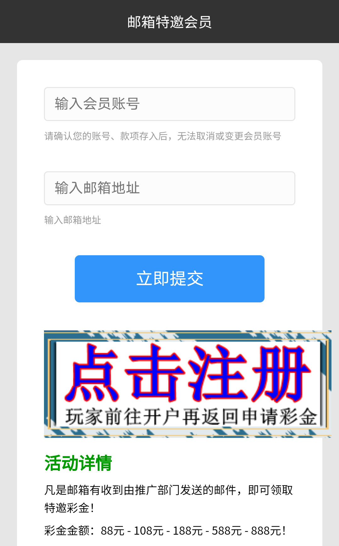 不要试,直接去注册搞,司马东西我试你妈了个逼,提示我有108彩金,注册完回来提示已经提交过了,去你妈