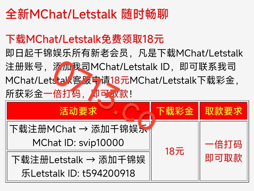 新用户下载app注册绑卡找在线客服申请20彩金 下载MChat领18彩金 游戏限制自行查看活动或询问客服