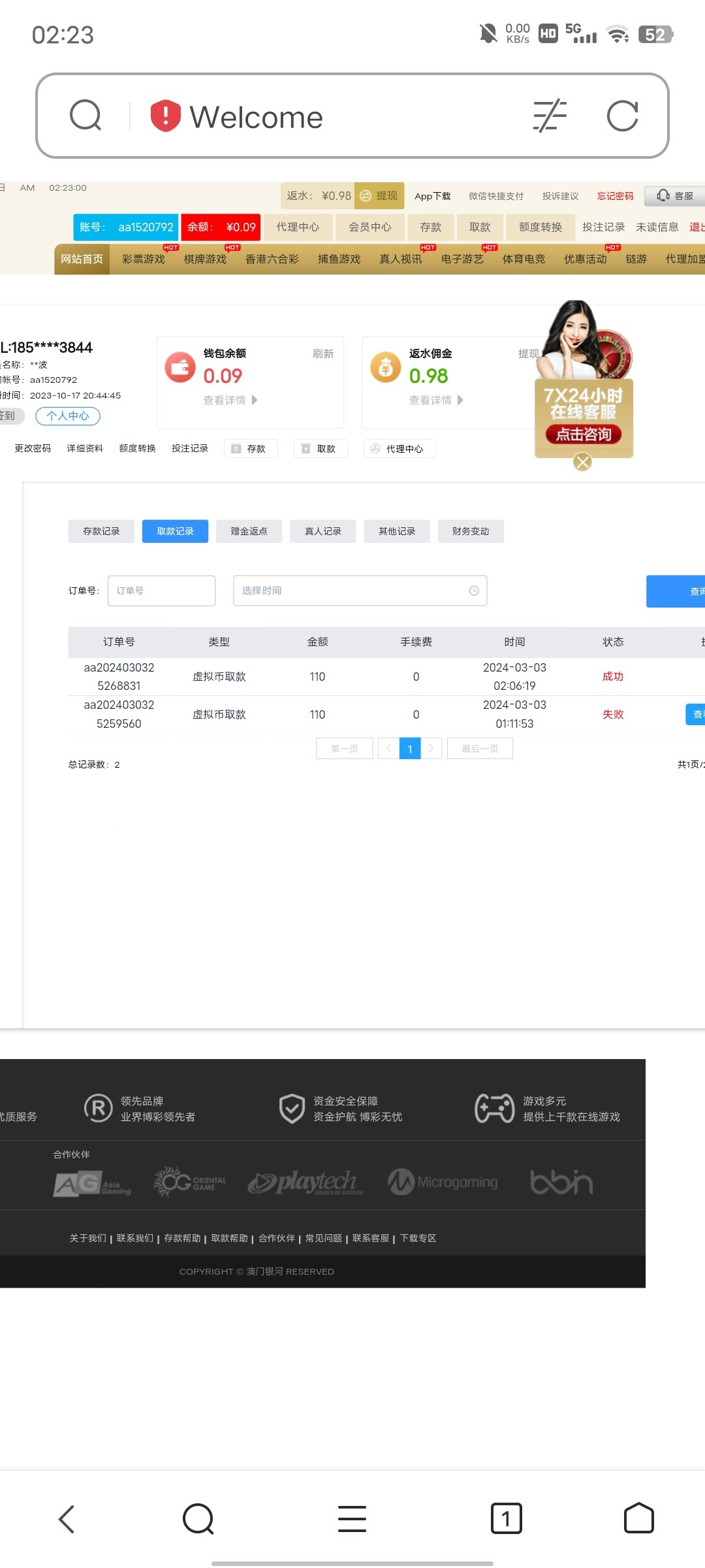 新濠还以为被黑了  结果要用k宝提现