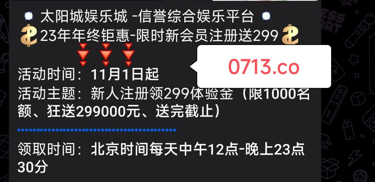 明天11.1号中午12点开始 新用户注册送299 每天限制名额1000个 具体其他要求还不知道 明天记得蹲点 游戏和提款限制自行询问客服