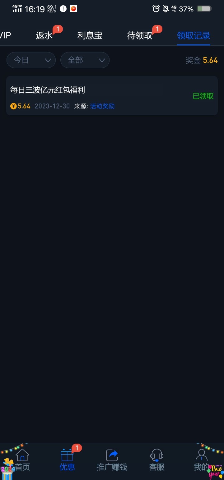签到领的1块上1k可惜最高只能提288