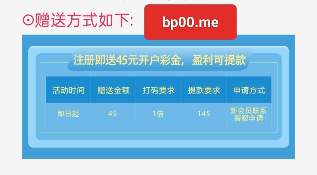 新老用户注册登陆绑卡 联系在线客服申请45彩金 把邮箱特邀图片发给客服 图片我放评论区了 无游戏限制 最低提款145元