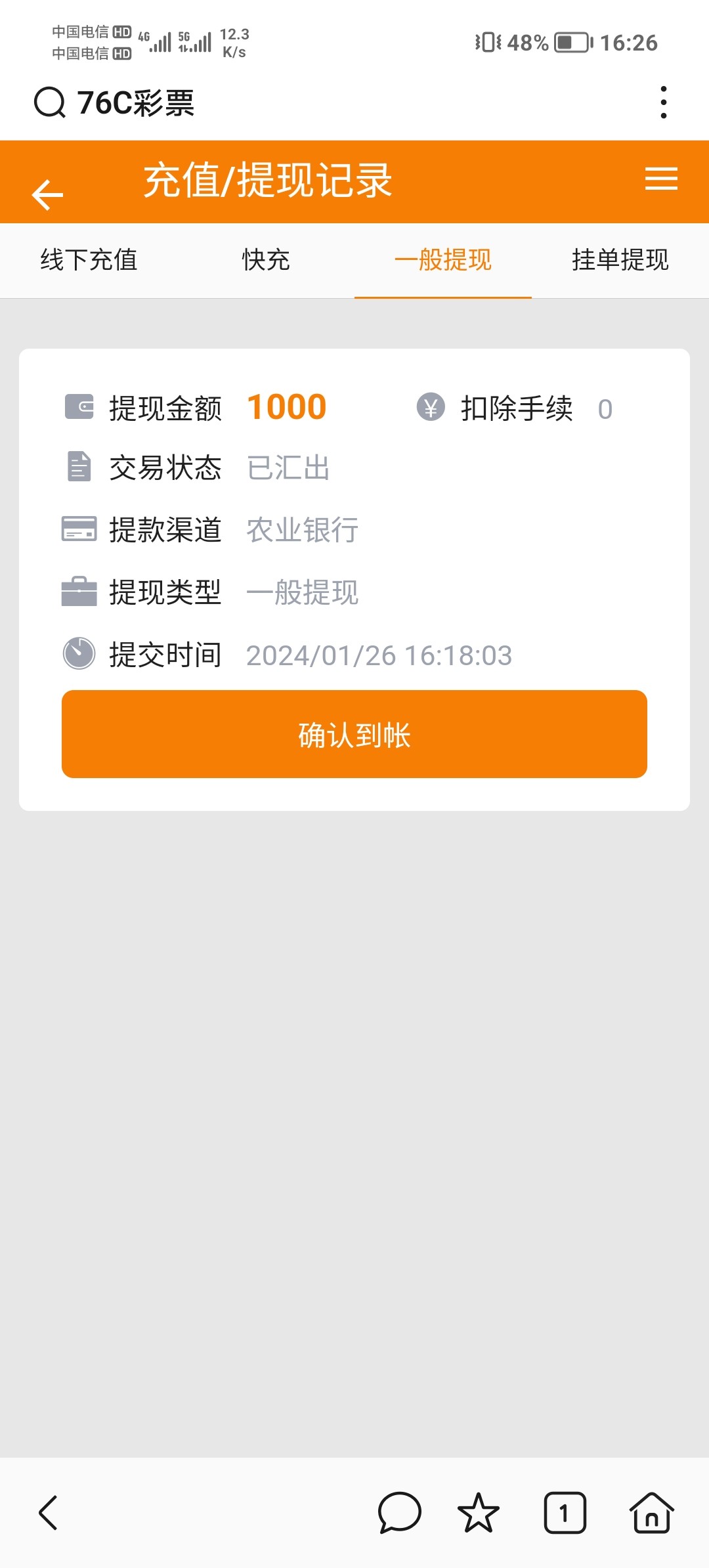 提了1000已到账