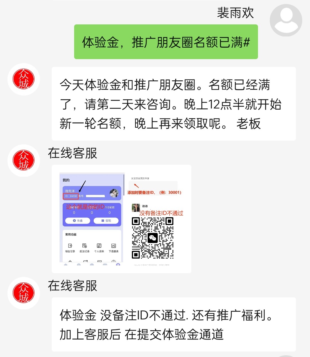 微信扫码联系在线客服点体验金然后等个1分钟左右客服会给你发微信号加微信号备注号自己ID添加就好了,添加好了在充值里面有体验金通道在那里输入18提交就好了 打到158下18现金