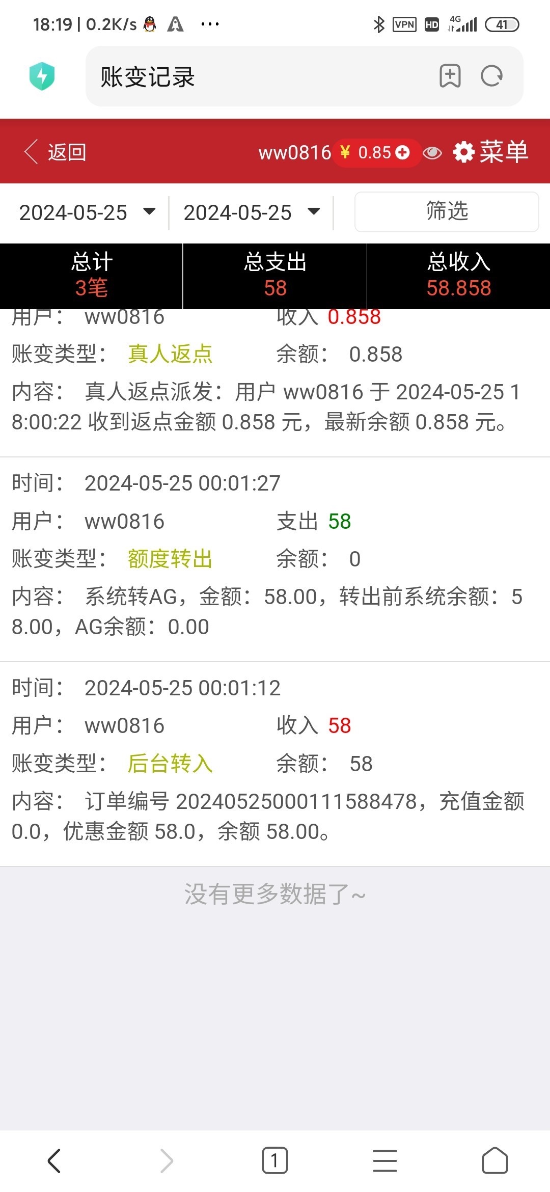 出款情况:自测(