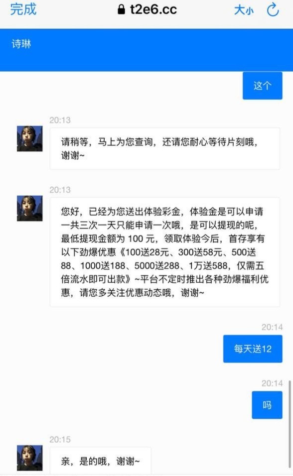机器人电话过来的,送12连续3天。 网站 5887.tv