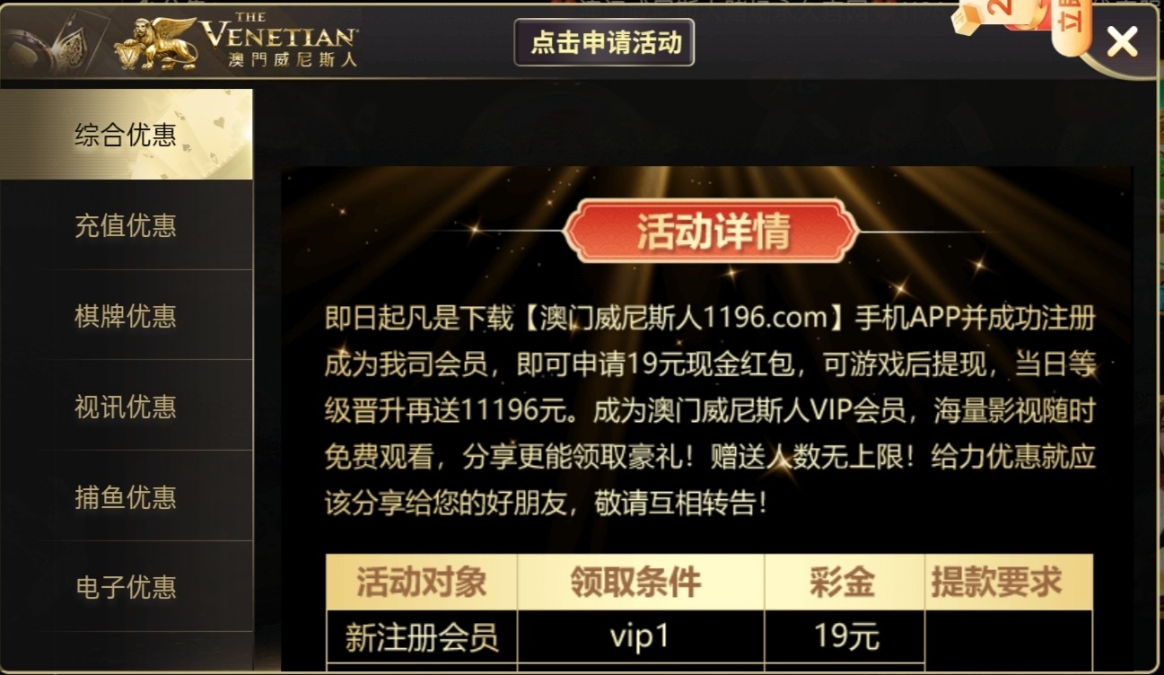 新用户注册绑卡完善信息,优惠里面找到活动自助领取19彩金,10倍流水提现,活动!详情平台查看