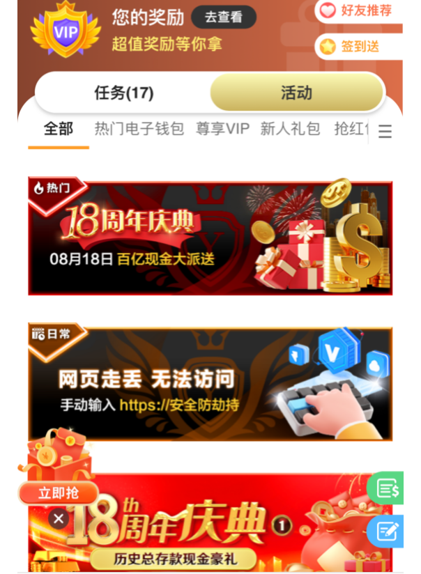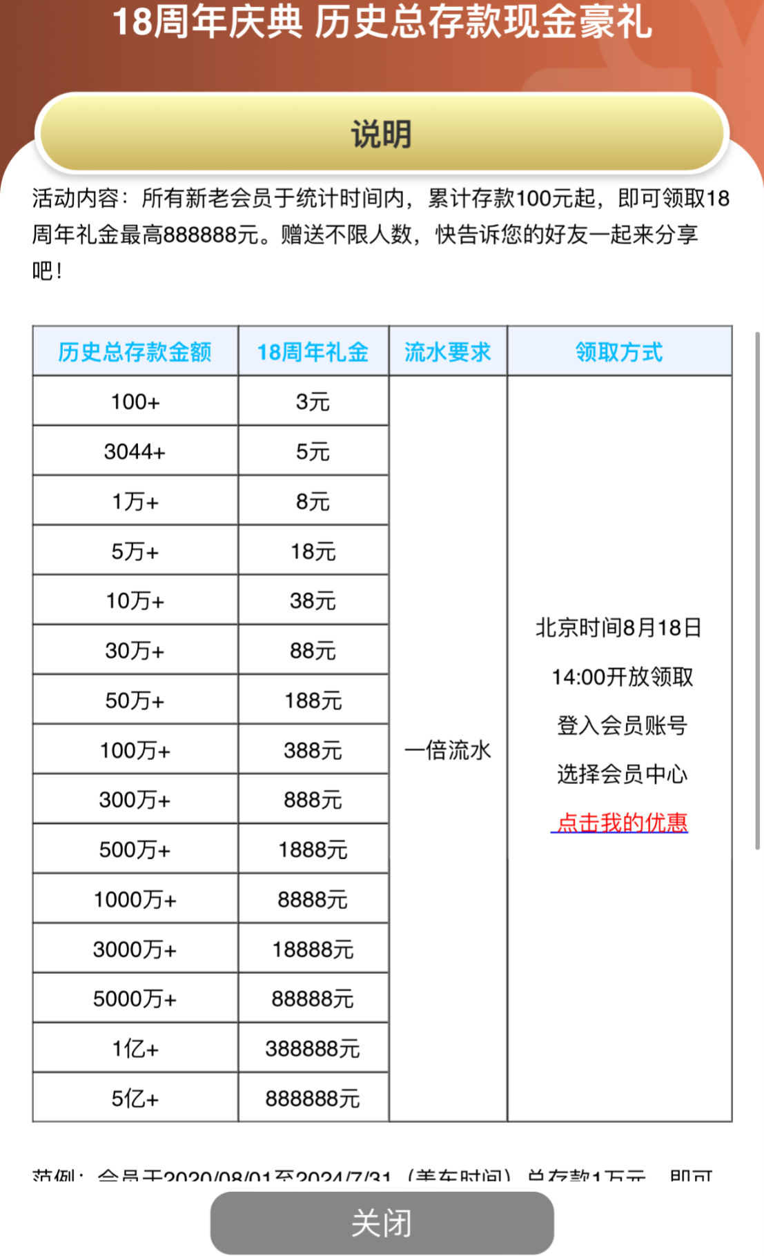 18周年庆历史总存款回馈活动