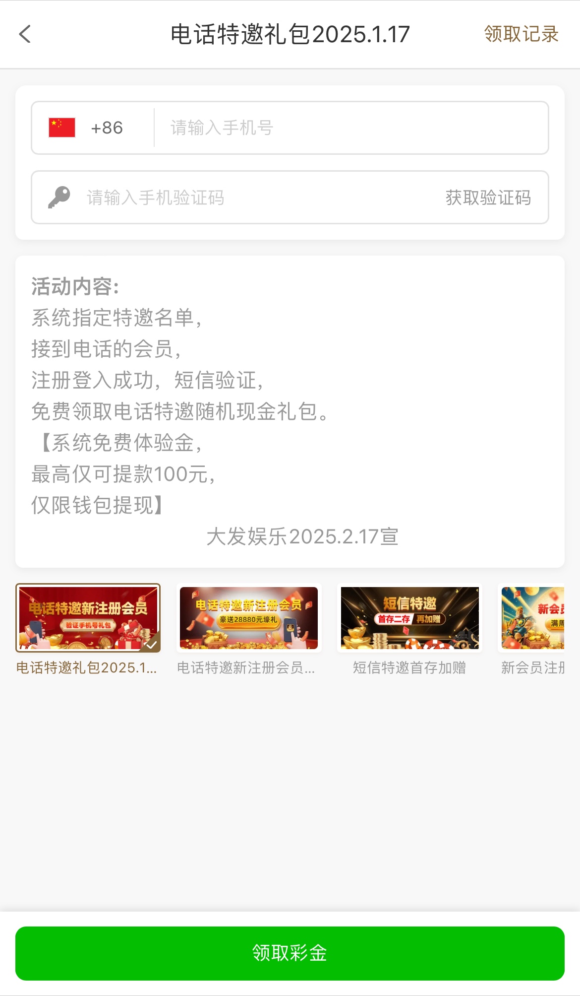 碰瓷电话特邀彩金,注册绑定手机号优惠自助领取,最高低提100
