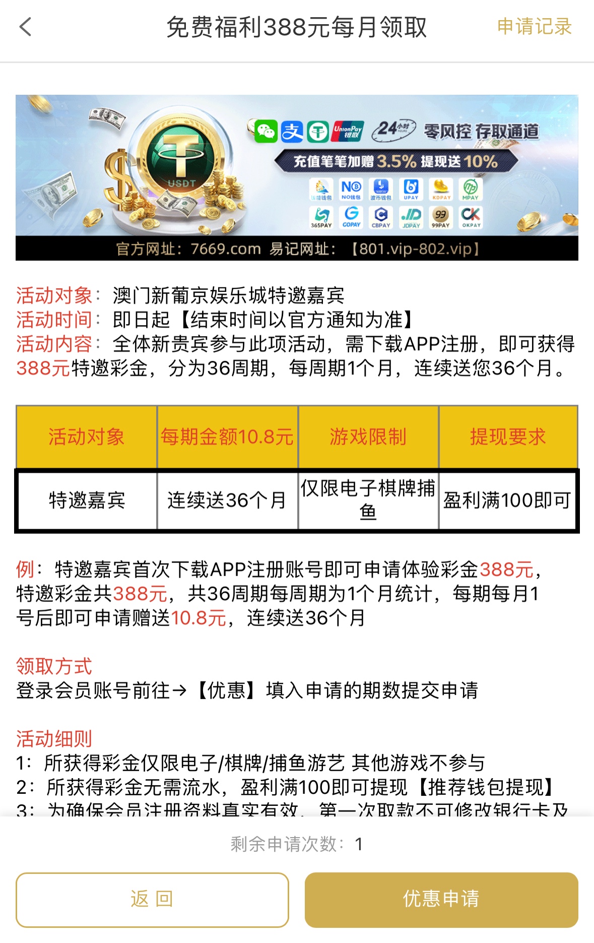 注册绑卡/手机号优惠里申请盈利满100提现