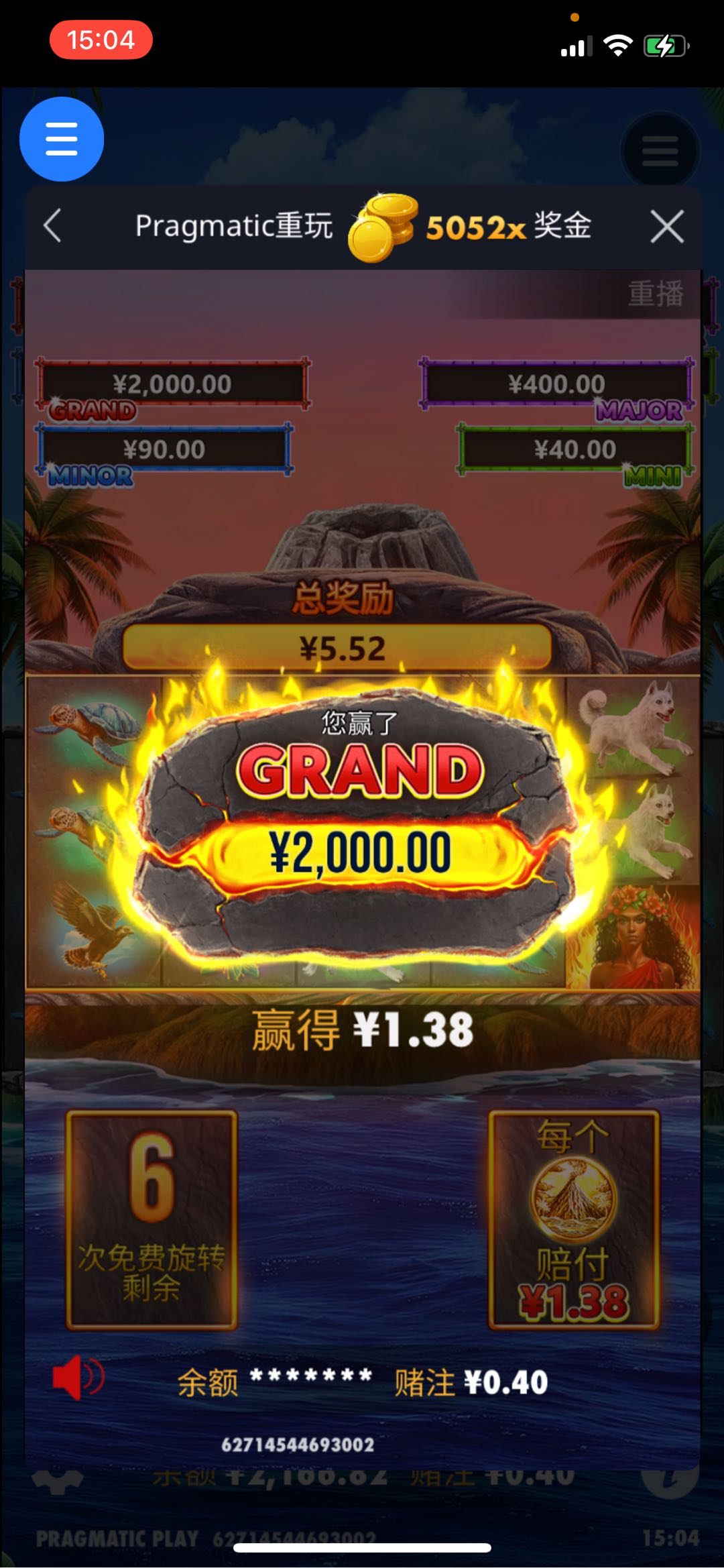 老哥留言:还是那句话 相信平台的力量 吃上5000倍了