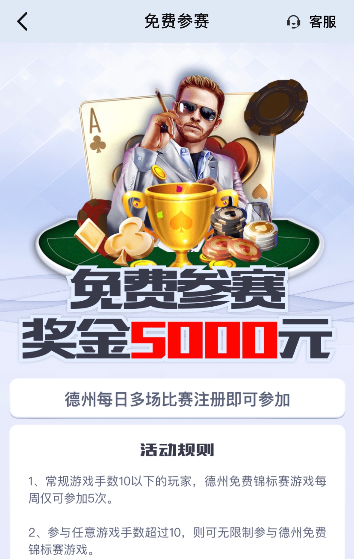 注册就能报名参加锦标赛,获得不同排名得不同彩金和门票
