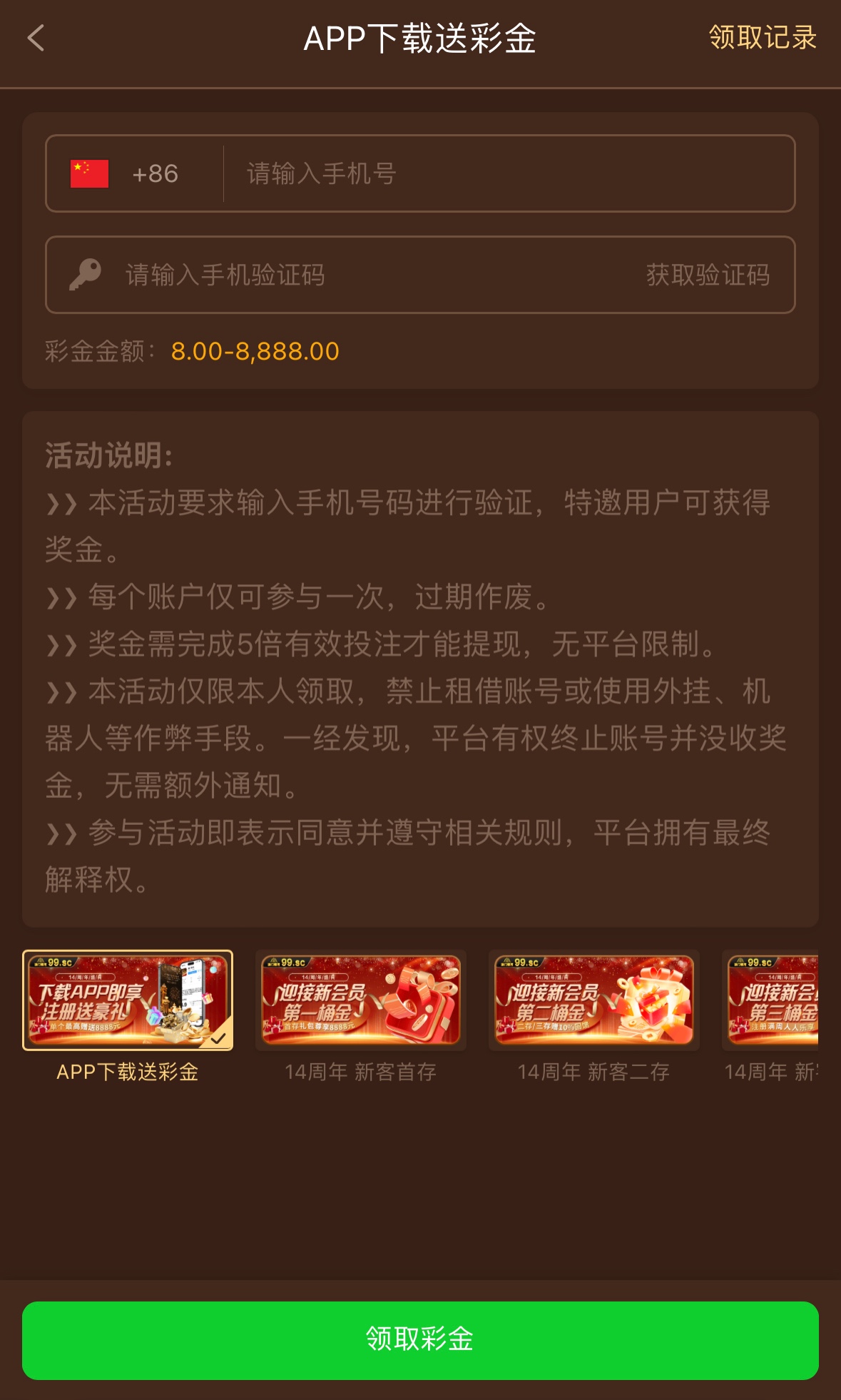 注册完善资料优惠里自助领取彩金,5倍流水
