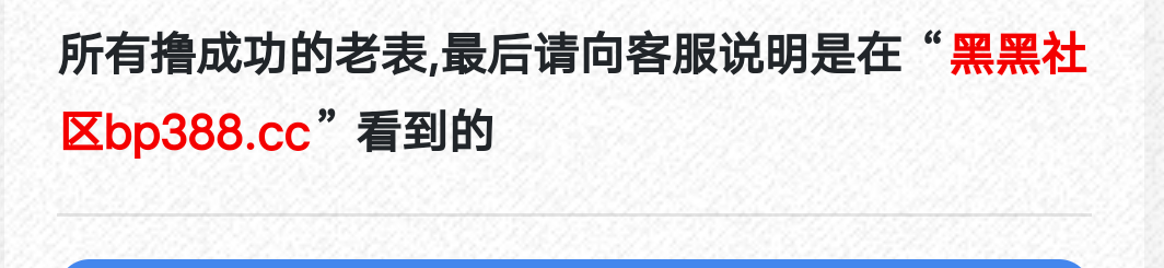所有撸成功的老表,最后请向客服说明是在“黑黑社区bp388.cc”看到的
