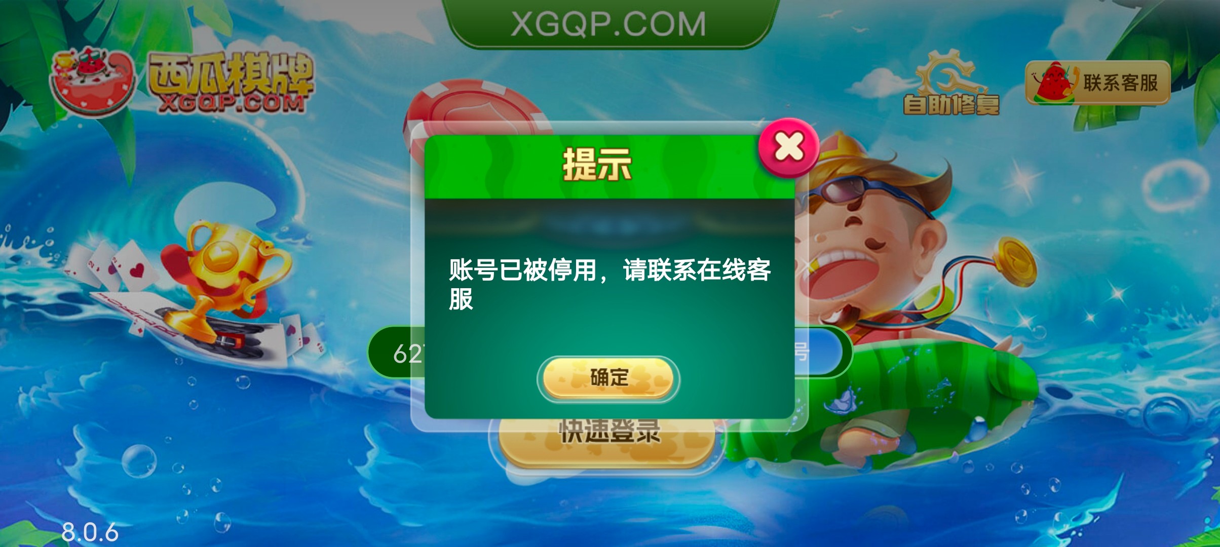 西瓜棋牌,出款秒封号,接到电话千万小心别被坑了