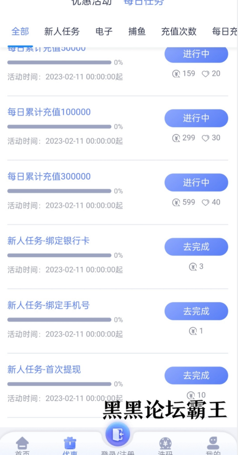 新用户手机号注册,优惠,每日任务里面完善资料自助领取4彩金,最低100即可提现,出款情况自测
