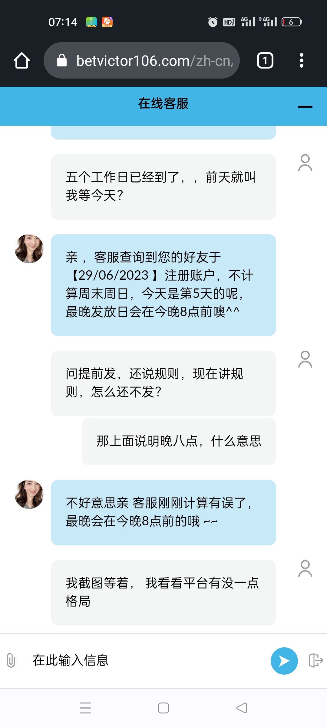 伟德黑台黑288,推荐金赖皮不给一直推脱,客服会话想关就关